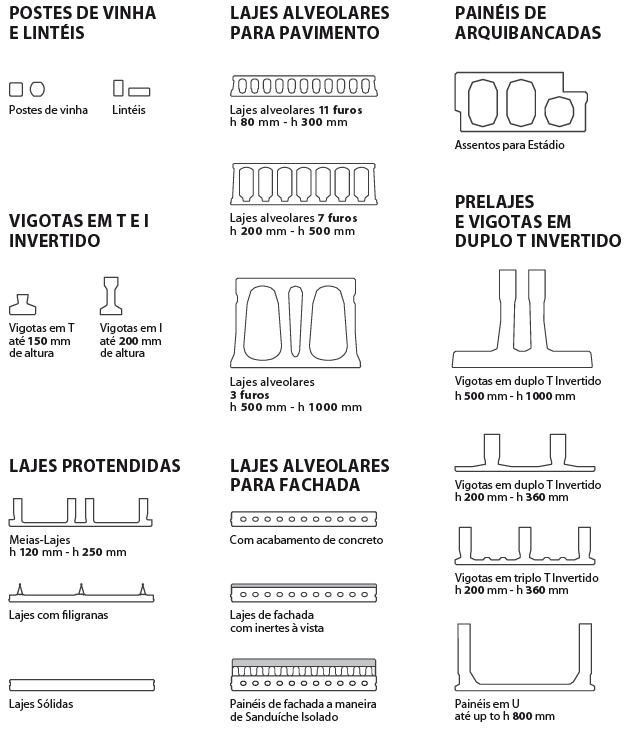 A série de elementos tem uma seção cruzada constante particular com duas grandes cavidades e uma cavidade central menor. Pode ser inserida uma malha de aço nas nervuras e na parte inferior do elemento.