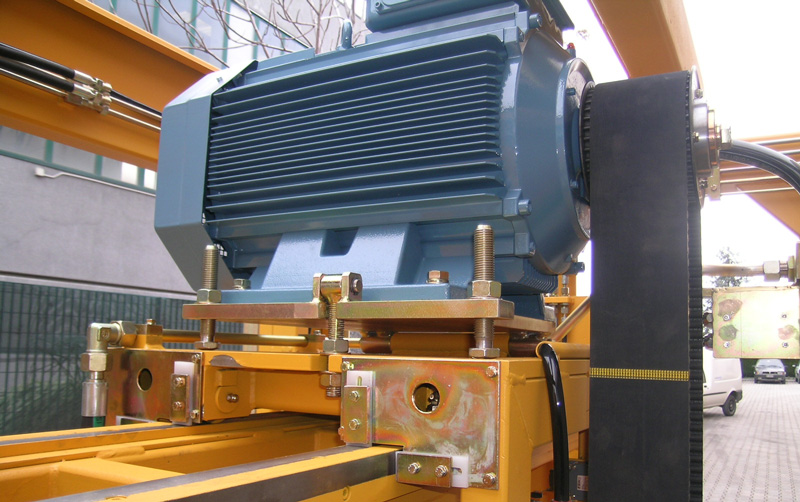 Motor elétrico e correia de transmissão dentada para girar a lâmina de corte